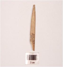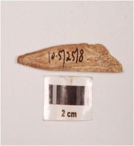 | Description / विवरण | Fragment of bone point, with pointed one end, flat broad broken other end, polished surface and plano concave section. |