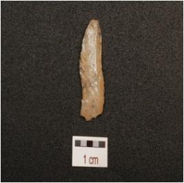 | Description / विवरण | Blade made on quartz with double ridge on dorsal side trapezoid in section, use wear marks along the working edge, diffused bulb on ventral side. |
