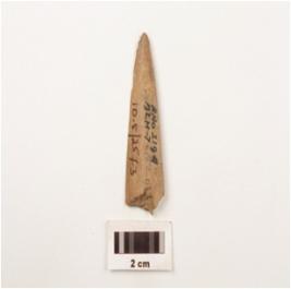 | Description / विवरण | Fragment of point bone, slightly damage at one end and point at other and well polished surface. |