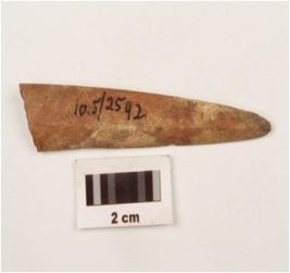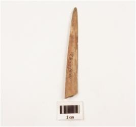 | Description / विवरण | Fragment of bone point biconvex cross section with sharp at one side and blunt at other and smoothly polished at both side. |