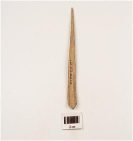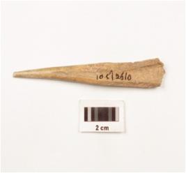 | Description / विवरण | Fragment of bone point with well polished and smooth surface, pointed at one end and flat at other side. |