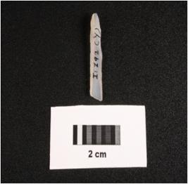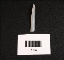 | Description / विवरण | Microlithic blade on chalcedony, double ridge on dorsal, trapezoidal in section, use wear mark along the cutting edges and smooth ventral. |