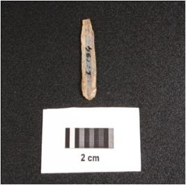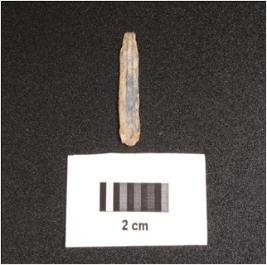 | Description / विवरण | Microlithic blade on chalcedony with prominent wavy mid ridge on dorsal, triangular in section, use wear marks on cutting edges and bulb on ventral. |