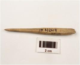 | Description / विवरण | Long bone point, pointed at one end, well polished and smooth surface. |