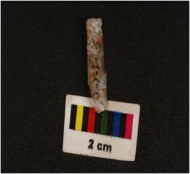 | Description / विवरण | Paralled sided chalcedony blade, mid ridge dorsal, irregular edges and diffused bulb on ventral. |