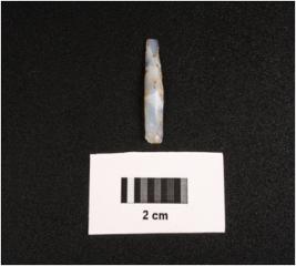 | Description / विवरण | Parallel sided microlith blade with two ridges on dorsal broken at distal end and diffused bulb on ventral and smooth surface. |