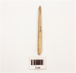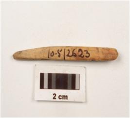 | Description / विवरण | Bone point, pointed at one side and blunted at other one with well polished and smooth surface. |