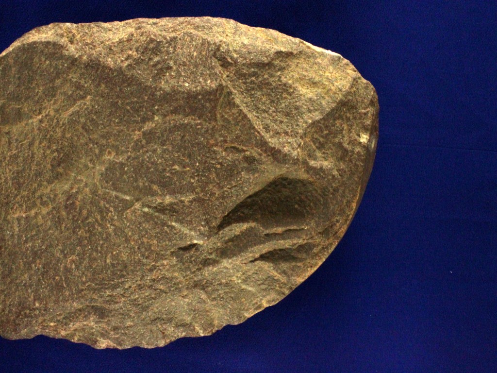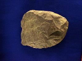 A Late Plistocenic stone age tool around 750.0 gms in weight. Minor deposition of dust and dirt is visible. The stone tool has sharp edges and a deep cut.