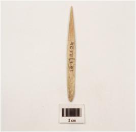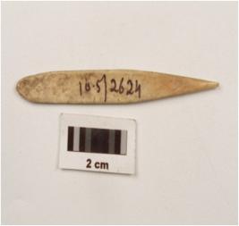 | Description / विवरण | Bone point with smooth and well polished surface, pointed at one end and flat at other side. |