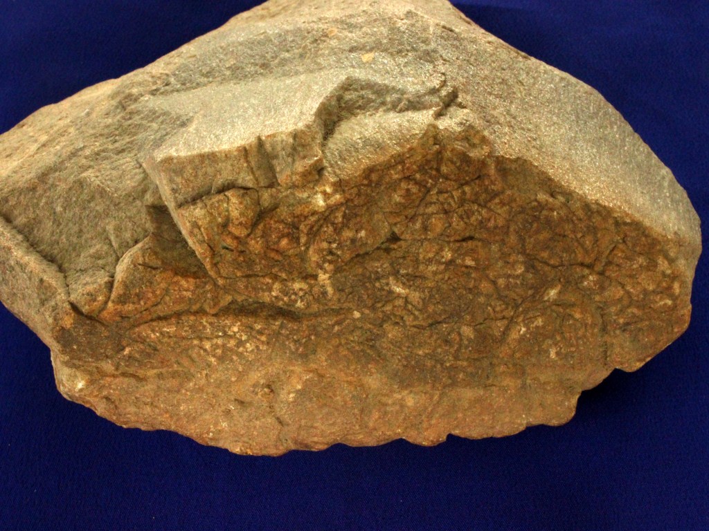 A Late Plistocenic stone age tool around 820 gms in weight. Minor deposition of dust and dirt is visible.