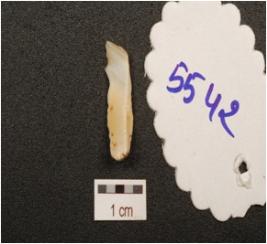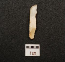 | Description / विवरण | Flake made on chalcedony use wear marks along the working edge, prominent bulb on ventral side, flake scars on dorsal side. |