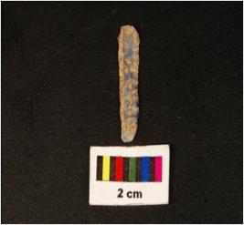 | Description / विवरण | Parallel sided blade with use wear marks on cutting edges, mid ridge on dorsal, bulb on ventral and triangular section. |