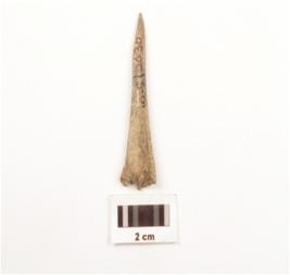 | Description / विवरण | Arrow head made, bone with winged end. Pointed at one end and polished smooth surface. |