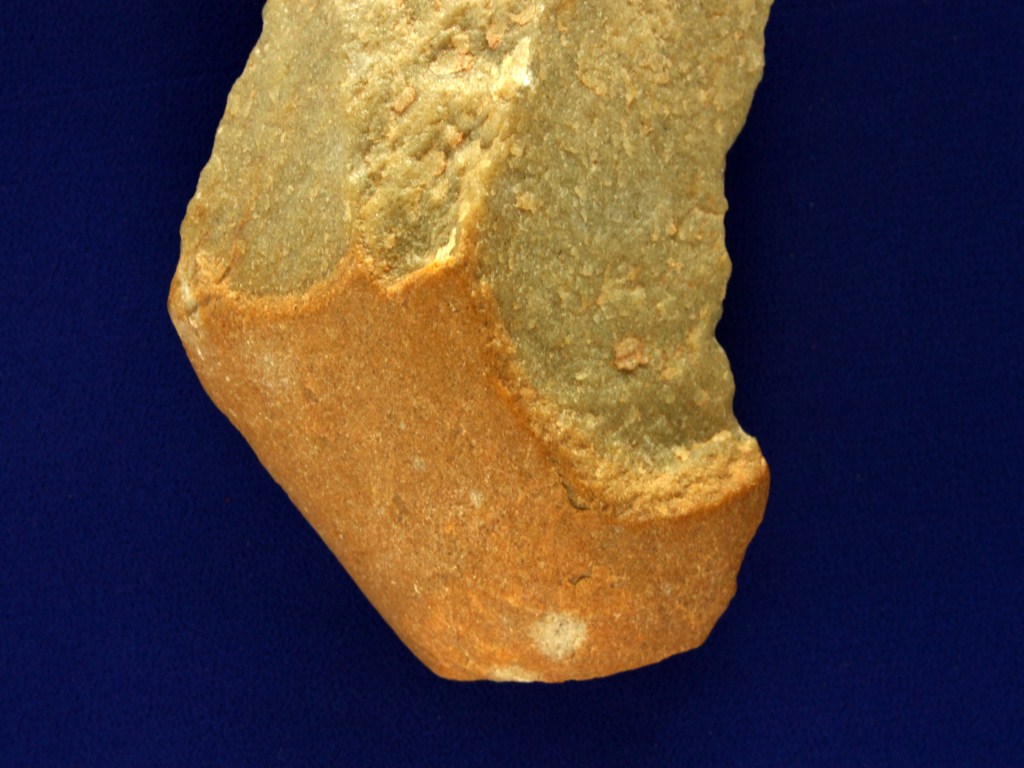 A Late Plistocenic Stone Tool 10.6 cm long and weighting 210.0 gms. The stone has some gradiant lines on it and also minor deposits of dirt and dust visible.