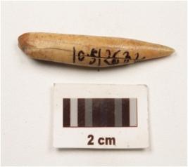 | Description / विवरण | Bone point with smooth polished surface, pointed at one end and flat at other side. |