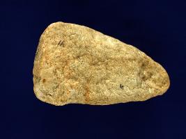 | Description / विवरण | A Late Plistocenic Stone age Tool around 12.7 cm in length. It is triangular in shape and has minor dust and dirt deposits visible on it. |