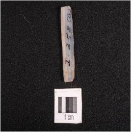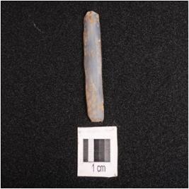 | Description / विवरण | Parallel sided microlithic blade with two ridges on dorsal trapezoidal in section, broken distal end and diffused bulb on ventral. |