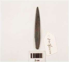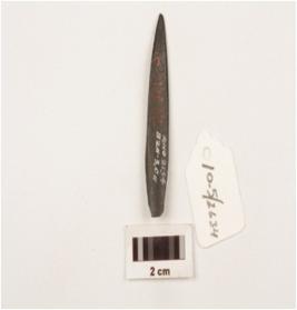 | Description / विवरण | Charred bone point with pointed at one end and blunded at other end and well polished smooth surface. |