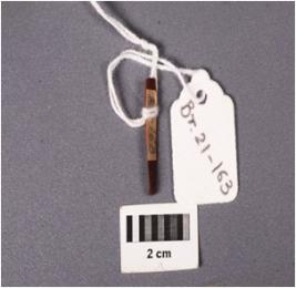 | Description / विवरण | Parallel sided microlithic chert blade with a prominent ridge on dorsal side, prepared platform. Bulb on ventral side, broken along at distal end, triangular in section and use wear marks on cutting edges. |