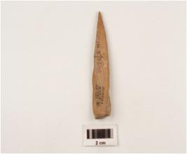 | Description / विवरण | Bone point with pointed at one end and blunted at other side, well polished at both side and smooth surface. |