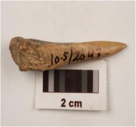 | Description / विवरण | Bone Point made by long bone with pointed at one end and blunted at other end. well polished both side and smooth surface. |