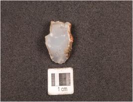 | Description / विवरण | Core, made on chalcedony three flake scars on surface, use wear marks on cutting edge and cortex on surface, diffused bulb on ventral and triangular in section. |