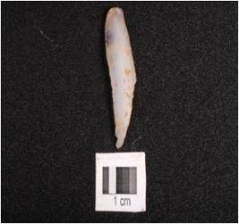 | Description / विवरण | Backed point with a mid ridge on dorsal diffused bulb on ventral, pointed distal end and use wear marks on edges. |