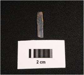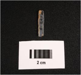 | Description / विवरण | Microlithic blade on chalcedony, double ridge on dorsal, trapezoidal in section, use wear mark along the cutting edge and ventral is smooth. |
