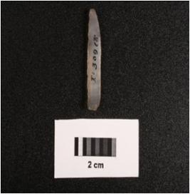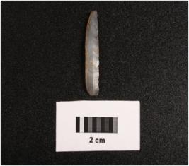 | Description / विवरण | Parallel sided chalcedony blade with two ridge on dorsal, flat ventral and irregular edges. |