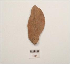 | Description / विवरण | Blade made on chert, prepared platform, blad scars on dorsal side, use wear mark along cutting edge. |