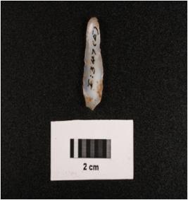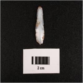 | Description / विवरण | Microlithic blade on chalcedony, flat ventral, irregular edges and mid ridge on dorsal. |