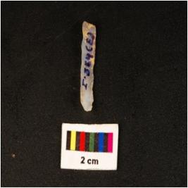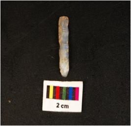 | Description / विवरण | Parallel sided microlithic blade with use wear marks on cutting edges, prominent bulb on ventral, triangular section and rough surface. |