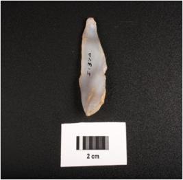 | Description / विवरण | Microlithic blade on unprepared core, use wear mark on one cutting edge. Cortex visible on one end and ripple marks on ventral. |