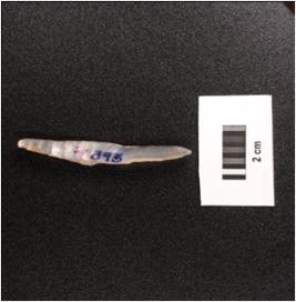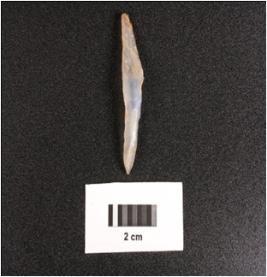 | Description / विवरण | Parallel sided backed blade with a mid ridge on dorsal, pointed at proximal end with diffused bulb and ripple marks on both sides. |