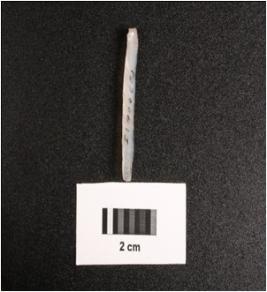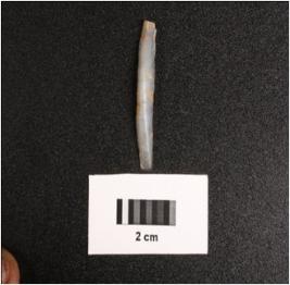 | Description / विवरण | Paralled sided chalcedony blade, mid ridge dorsal, flat ventral and diffused bulb. |
