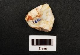 | Description / विवरण | A chert flake with smooth and cortex on surface and use wear marks on edge. |