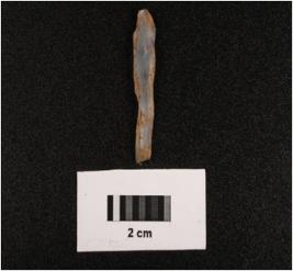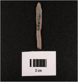 | Description / विवरण | Microlithic blade on chalcedony, flat ventral, irregular edges, mid ridge on dorsal and diffuced bulb on ventral. |