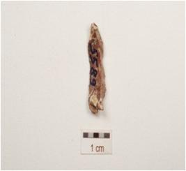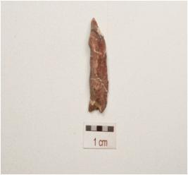 | Description / विवरण | Flake made on chert, blad scars on dorsal side, pointed distal end, use wear mark along cutting edge. |