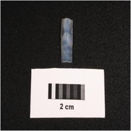 | Description / विवरण | Microlithic blade on chalcedony, prominent mid ridge on dorsal, triangular in section, use wear mark along the cutting edges and ventral is smooth. |