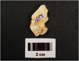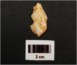 | Description / विवरण | A chert flake with cortex and smooth surface and use wear marks on edge. |