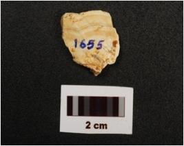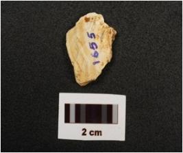 | Description / विवरण | A chert flake with flake scars on surface, prepared platform and bulb on ventral. |