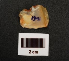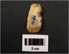 | Description / विवरण | A chert flake with cortex on surface and striking platform. |
