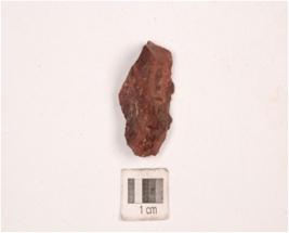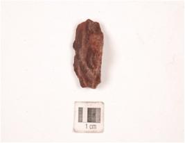 | Description / विवरण | Scraper made on chert with flake scars on surface, use wear marks on working edge and deffused bulb on ventral. |