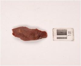 | Description / विवरण | Scraper made on chert with two blade scars and flake scars on surface, diffused bulb on ventral use wear marks on cutting edge. |