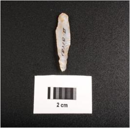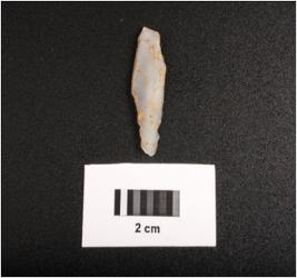 | Description / विवरण | Microlithic blade with double ridges on dorsal, ripple marks on ventral, use wear marks on cutting edges and trapezoidal in section. |