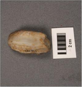| Description / विवरण | Chalcedony blade on core with four blade scars, prepared platform and cortex on surface. |