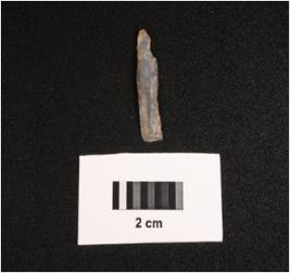 | Description / विवरण | Microlithic blade on chalcedony, double ridge on dorsal, trapezoidal in section, use wear mark along the cutting edges and smooth ventral. |