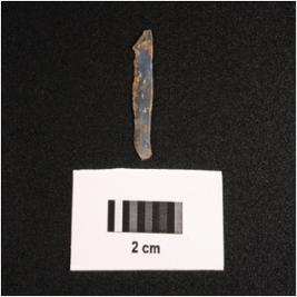 | Description / विवरण | Microlithic blade on chalcedony, prominent double ridge on dorsal, trapezoidal in section and use wear mark along the cutting edge. |