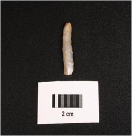 | Description / विवरण | Parallel sided microlith blade with use wear marks on cutting edges, prominent mid ridge on dorsal, broken at distal end and diffused bulb on ventral side. |