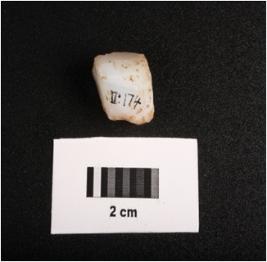 | Description / विवरण | Fragment of prepared core with six blade scars on surface and cortex is visible. |
